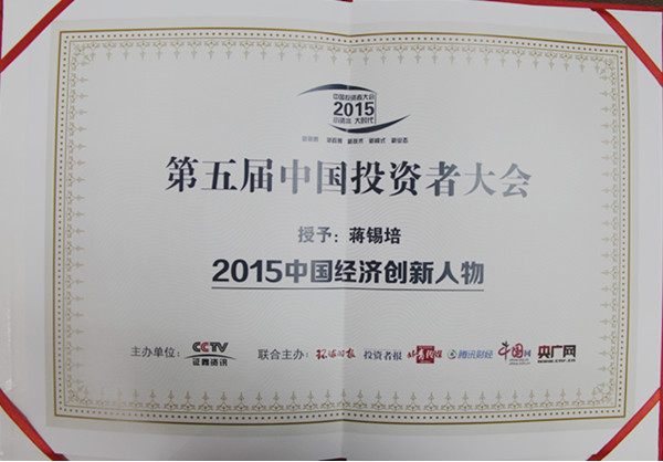 1月17日,由CCTV证券资讯频道主办,环球时报、北青传媒、投资者报、腾讯财经、中国网财经、央广网财经联合主办,浩然天下资产管理(北京)有限公司承办的“第五届中国投资者大会”在北京召开。远东控股集团董事局主席、首席执行官蒋锡培受邀参加了此次会议,并荣获“2015中国经济创新人物”。远东控股集团董事徐浩然主持大会。