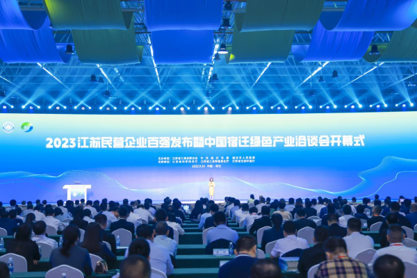 9月26日,为展示全省民营企业发展成就,扩大民营企业影响力,引领企业高质量发展,2023江苏民营企业百强发布活动在宿迁举行。本次会议由江苏省工商业联合会、中共宿迁市委、宿迁市人民政府主办,主题为“高端·智能·绿色”。