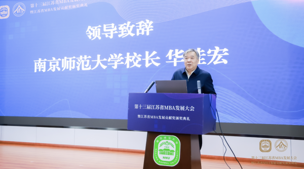 开幕式 南京师范大学校长华桂宏教授首先致开幕辞。近年来,南师大引进了25个不同领域的国家级人才,并在人才引进与培养、社会服务、国际合作、学科建设等方面取得了显著进展。江苏省MBA企业家联谊会2008年成立,而南京师范大学也正是从2008年开始筹建MBA项目,致力于培养具有深度责任感、具有创新精神的全球商业人才。经过十五年的发展,南师大MBA教育凭借百年文化底蕴和经济管理学院的雄厚实力,追赶学术前沿、服务社会发展,以教育为中心,精心打造品牌。持续为公检法、税务系统和企事业单位培养了一大批具有使命意识、全程视野、创新思维的高层次人才,得到了社会各界的肯定,成为学校服务社会、开放办学的重要体现。此次大会对于促进南师大人才培养经验分享、岗位教育以及教育高质量发展具有非常重要的意义。同时,也为江苏的商科教育发展构建新蓝图、树立新范式。 江苏省工商联二级巡视员李晓东发表致辞。李晓东认为,近年来全省MBA教育针对新一轮科技革命和产业变革的新形势新要求,不断探索商科教育和产业变革的融合发展,深度融合新商科、新产业、新模式。面对科技创新的新浪潮和日新月异的新业态,未来新商科教育的发展方向和路径探讨和研究正是此次举办论坛的目的之所在。李晓东就 MBA 企业家联谊会工作提出三点意见:一是要提升发展信心,把服务高质量作为新时代工作的出发点。二是要适应时代形势,把改革创新作为商科教育未来的着力点。三是要坚持内联外引,把品牌建设作为MBA办会的增长极。 江苏省MBA企业家联谊会会长、久吾高科董事长党建兵发表致辞。党会长介绍了 MBA 企业家联谊会的成立与发展情况,分享对于未来商科教育的看法和体会。他认为,商科教育需要把握经济前端,捕捉经济发展的变化与方向,争取通过每年一次的MBA发展大会活动,为广大MBA以及社会人士带来最前沿的经济视角,努力提升MBA在江苏经济发展中的地位。党建兵还分享了自己所在的久吾高科公司招聘情况和人才培养情况,作为“江苏优秀企业”和与南京工业大学双牵头的制造业创新中心,久吾高科近年来输送、培养了十多名 MBA。 党建兵认为,物质文明建设目前已经趋向成熟,精神文明建设需要肩负起未来发展的重任。南京师范大学在人文教育、社会发展及思想研究方面具有深厚的底蕴。未来的商业教育不仅仅停留在基本的商业思想的培养上,更应该融合中国传统的人文思想,追求科技与人文、物质与精神等方面平衡与协调,实现“师范商科教育的独特魅力与优势”。