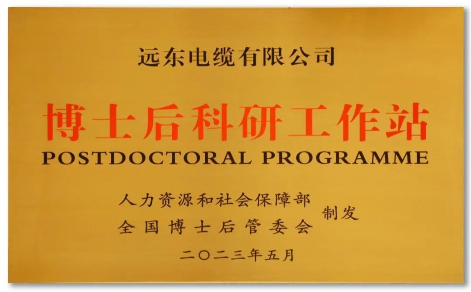 2023-05-29在国家各级博士后工作管理部门的大力支持和公司的高度重视下,远东电缆“博士后科研工作站”于2023年5...